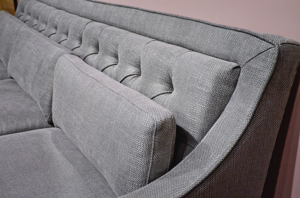 FB Диван 3-х местный, отделка шпон махагона С, ткань серо голубая рогожка ART62799-col,12, 225*93*86 см.